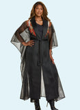 Shine bright in this one. Featuring a luxurious long duster over a stretch cami and sleek pants, this look makes a stunning statement for autumn events and holiday parties. Jacket 57" Pant Inseam 31"