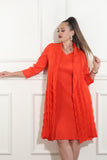 Add a pop of color with this fiery orange Luxe Moda set. Crisp pleats and layered texture make this an effortlessly bold look.